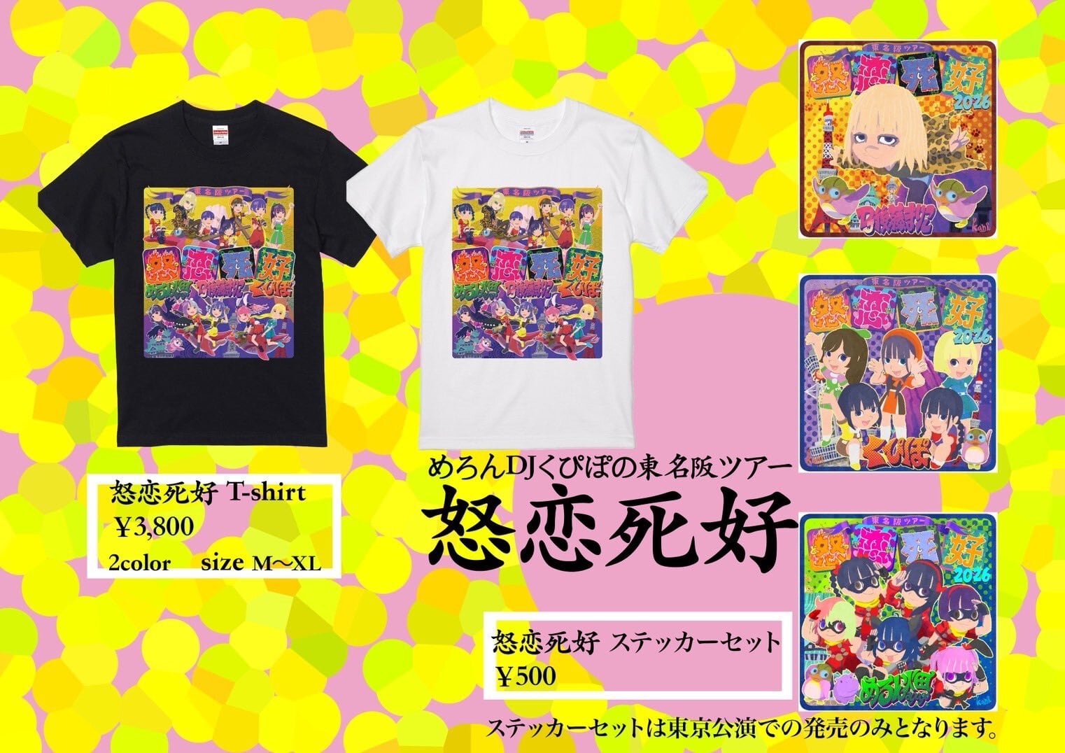 めろんDJくぴぽの東名阪ツアー『怒恋死好』のオリジナルグッズTシャツです。