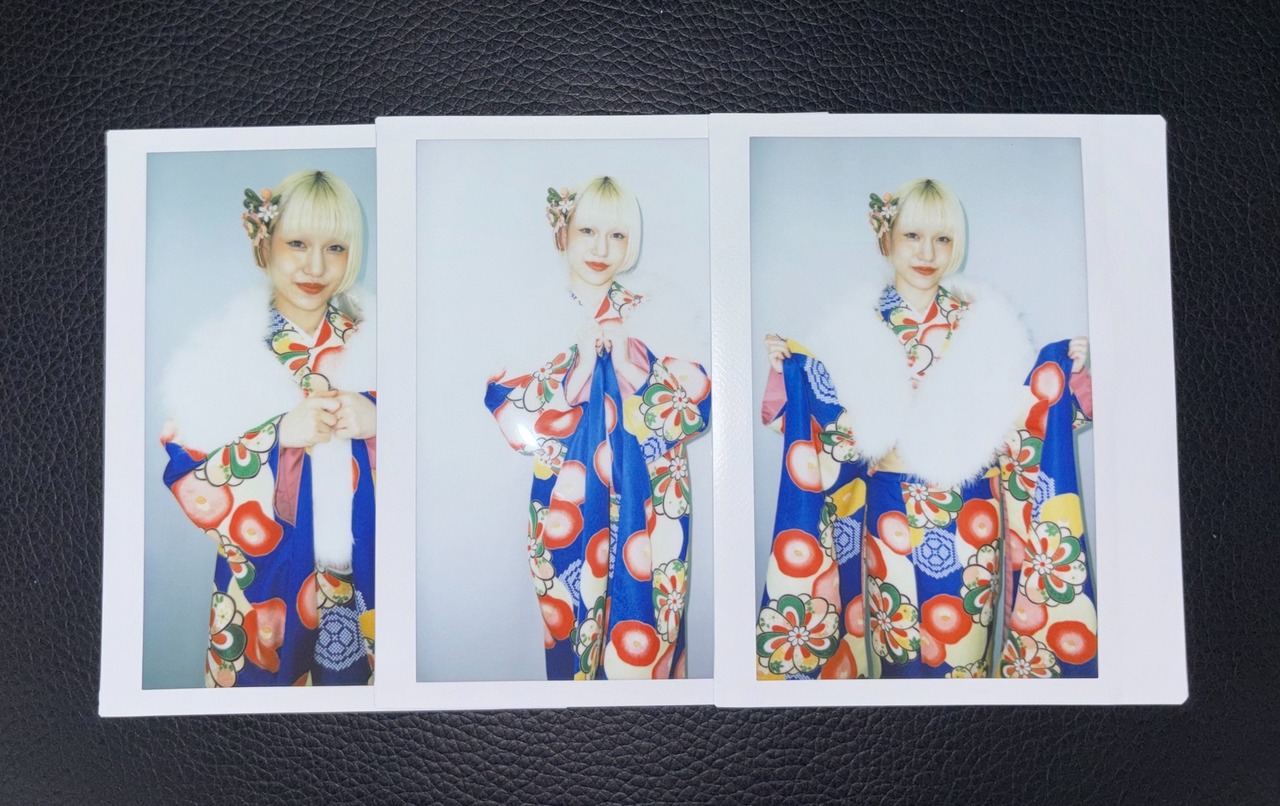 くぴぽの1月のデコレーションWIDEチェキ[振袖ver]です。